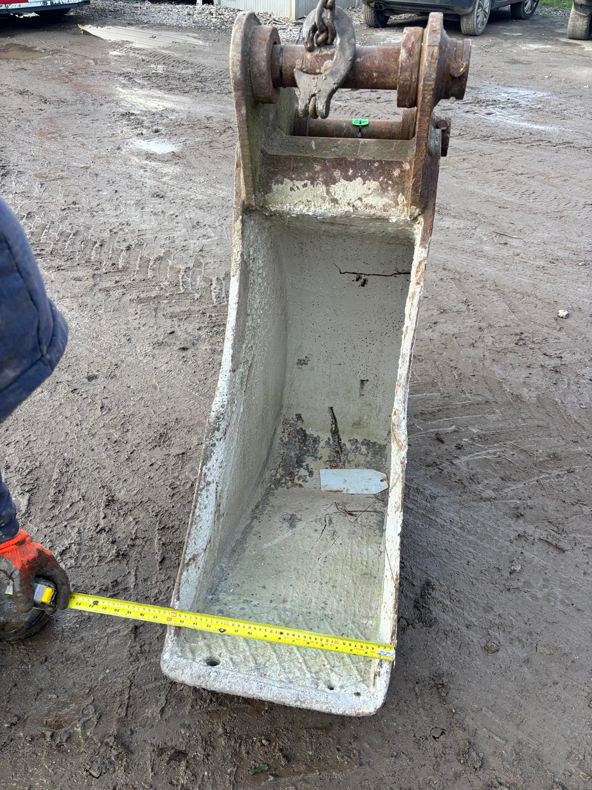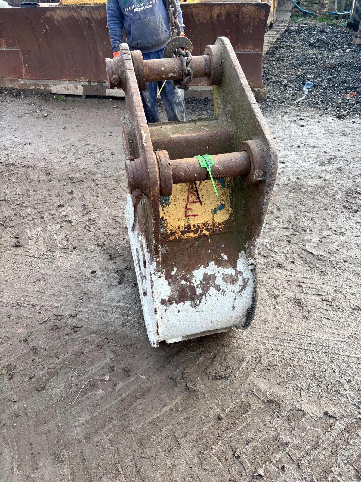 16 INCH WIDE BUCKET WITH 65 MM PINS, SUITABLE FOR EXCAVATOR / TELEHANDLER APPLICATIONS. STRONG BUCKET, HAS A CRACK AS SHOWNIN PHOTOS