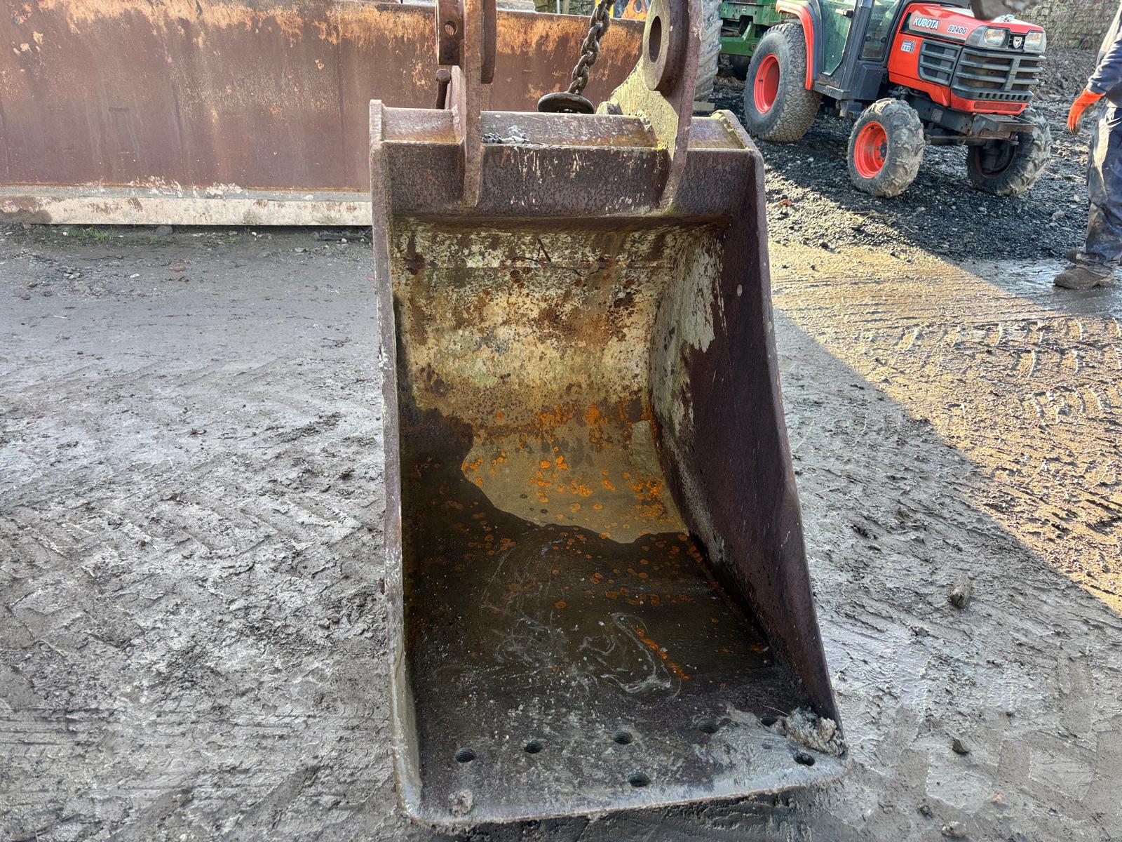 2’6 FOOT WIDE BUCKET WITH 80MM PINS, SUITABLE FOR EXCAVATOR / TELEHANDLER APPLICATIONS. STRONG BUCKET, NO CRACKS, WEAR AS EXPECTED BUT PLENTY OF LIFE LEFT.